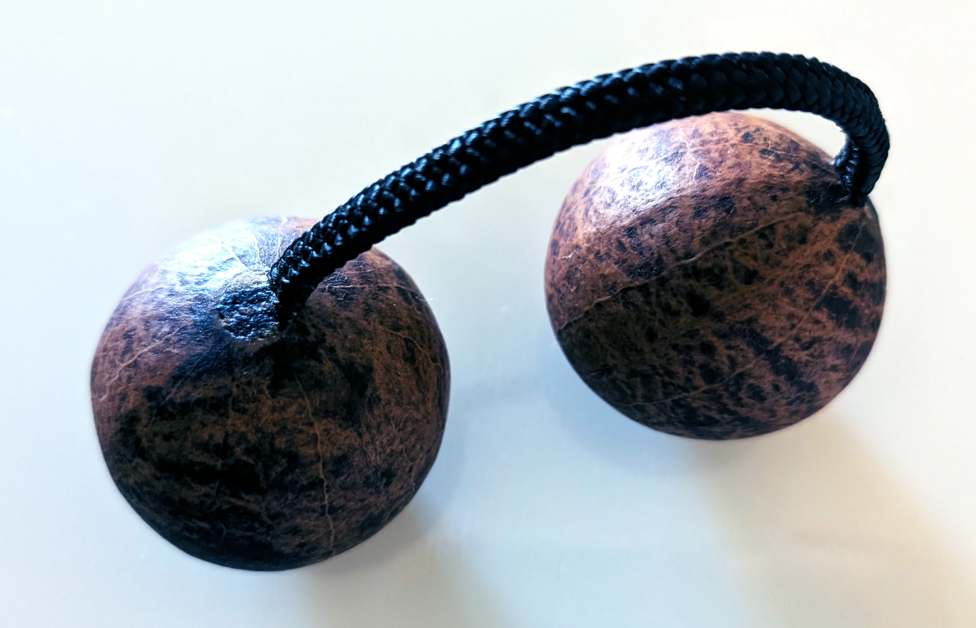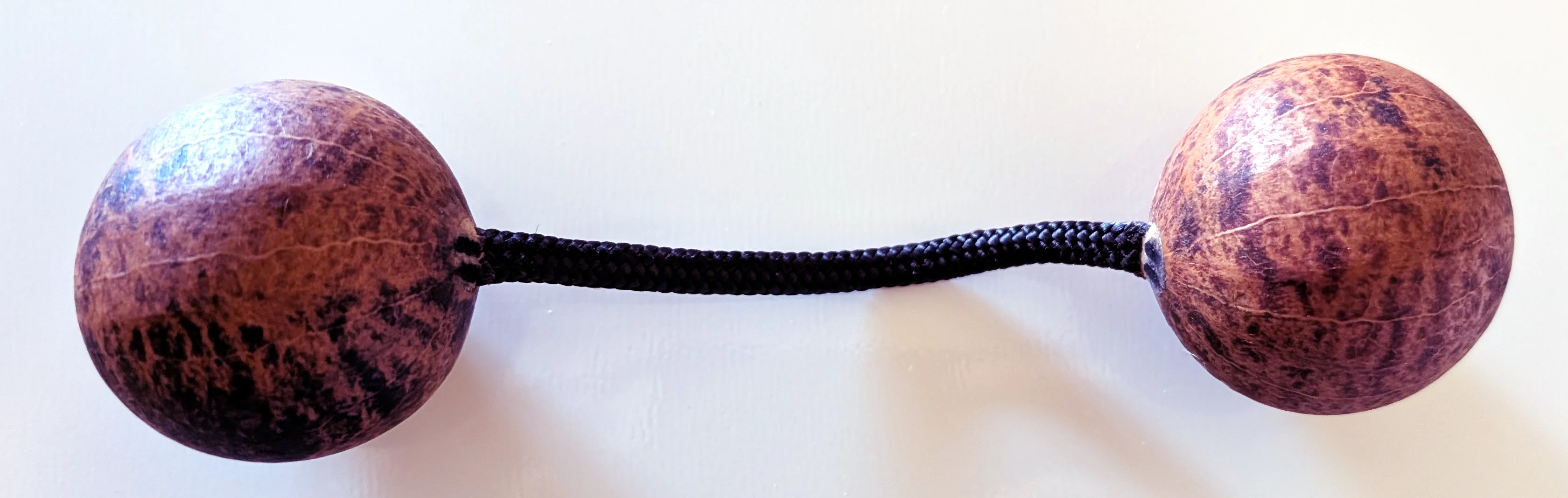 In the Japanese subculture (as well as online), it is important to be able to adjust the length of the rope. Below is a pair of asalato where it is not possible to adjust the length, as the ends of the rope are glued inside the asalato.